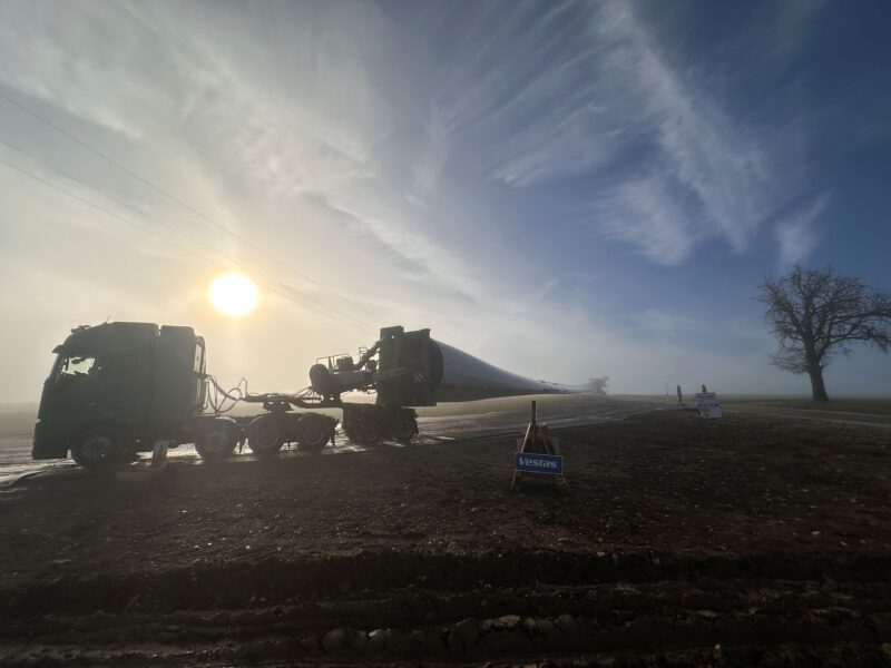 Ende letzter Woche kamen dann, nach einem längeren Zwischenstopp auf der Autobahn, die aus Polen kommenden ersten drei Rotorblätter an.
