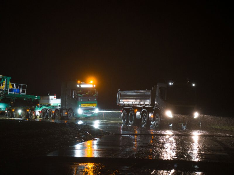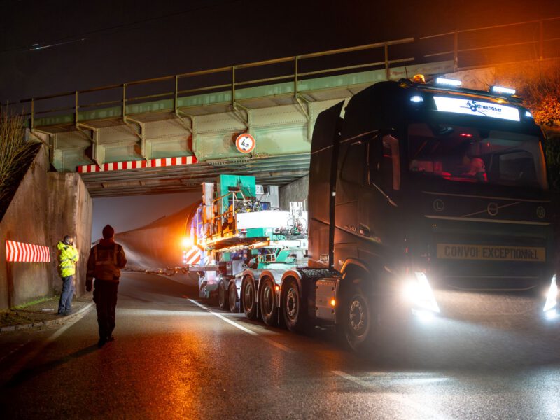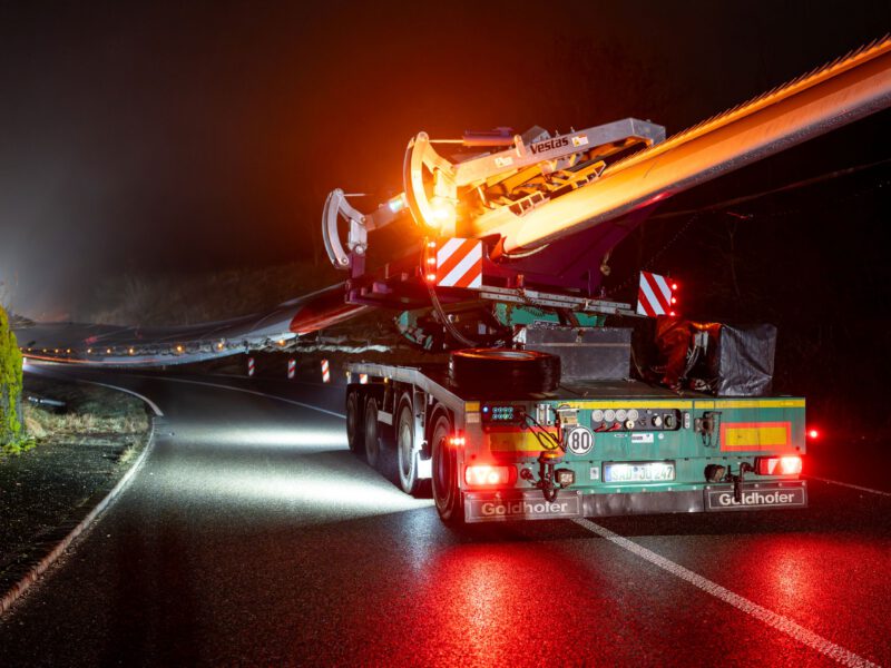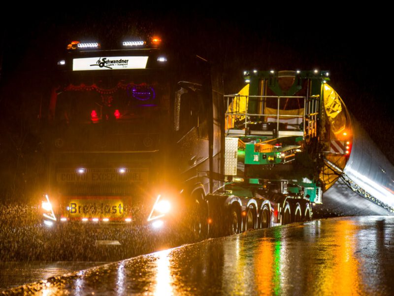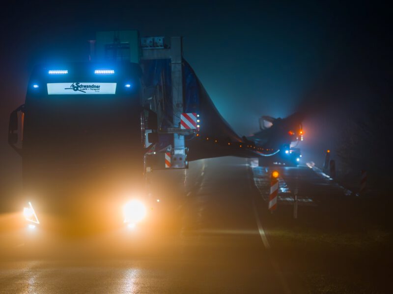 Im Scheinwerferlicht: Nächtliche Groß- und Schwertransporte zum Windpark Schalkstetten