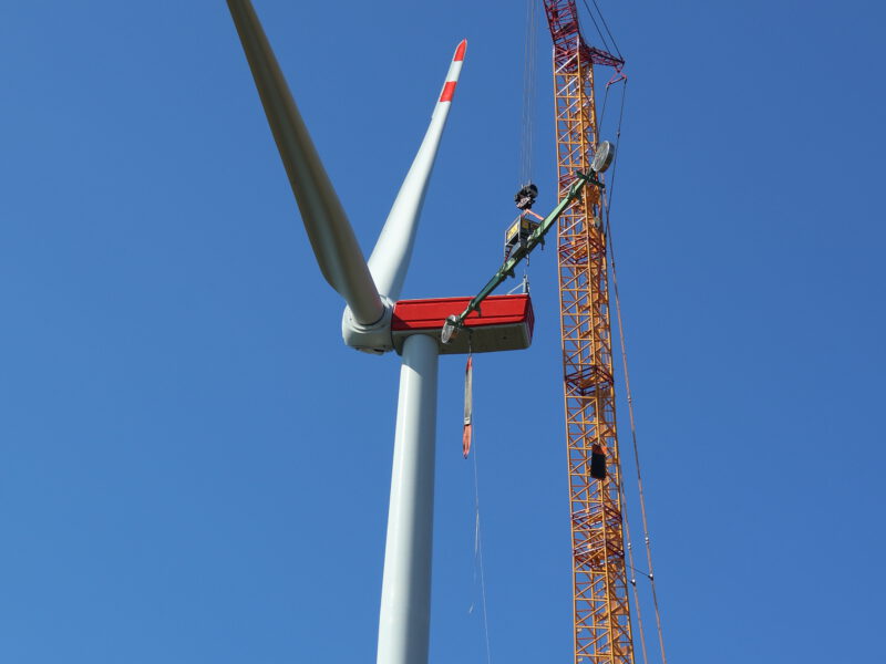 Inzwischen konnte der Turmbau erfolgreich abgeschlossen werden und die ersten Komponenten werden angeliefert. Die Errichtung der Anlagen erfolgte im Sommer 2024.